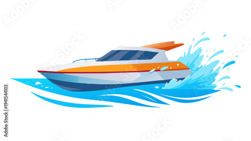 Luxury Speed Boat Sailing on Blue Ocean Waves