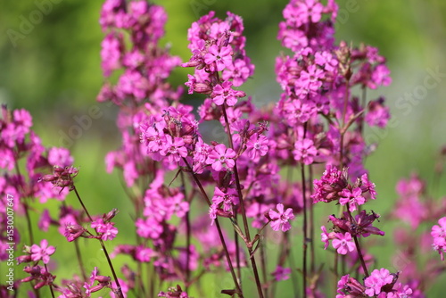 Lychnis viscaria, delicate pink wildflowers. Blooming sticky catchfly.