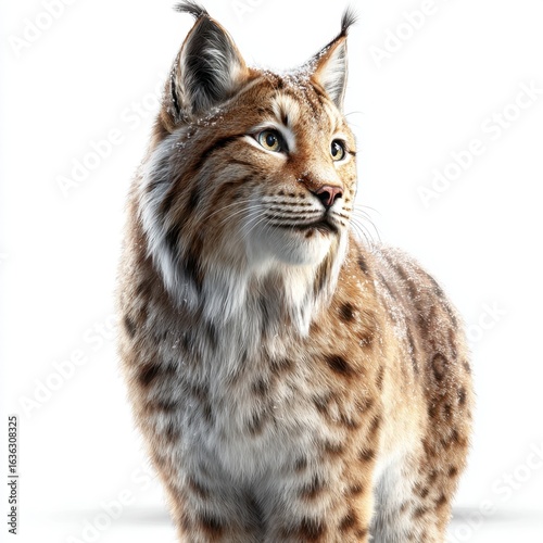 Lynx Portrait with Snow, Isolated White Background