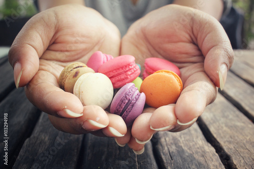 Macaroons colorful on hands