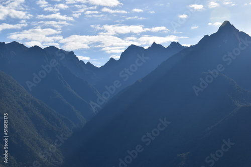 Machu Picchu and the surrounding mountains of the Urubamba Valley in Peru