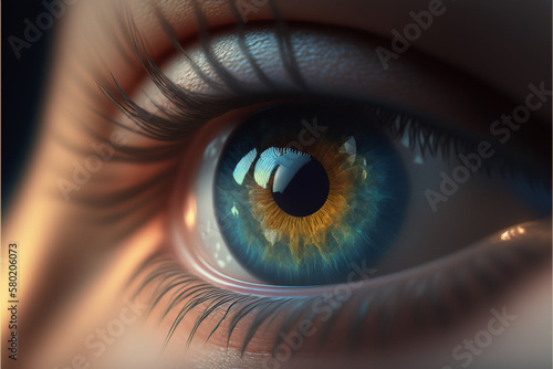 human, eye, colours, eyeball, iris, macro, closeup, closeup, people, close, beautiful, pupil, blue, up, white, view, eyesight, vision, person, sharpened, young, optical, face, female, look, woman, skin, generative, ai