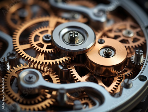 Macro photography captures the texture and tiny details of interconnected mechanical gears.