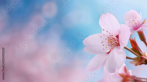 Macro Shot of Delicate Cherry Blossom Flower Petals Against a Soft Blue Background