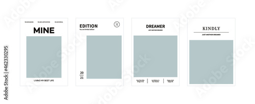 Magazine style design photo frame illustration set. Simple graphics in black and white.