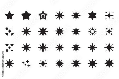 star, sparkle, icon, rating, favourite, highlight, glow, twinkle, symbol, shape, burst, shine, glistering, light, flash, award, badge, review, quality, magic, celebration, decoration, abstract, element, design, graphic, pictogram, set, collection, minimal, flat, glyphs, template, isolated, black, silhouette, bright, effect, luxury, premium, mark, emblem, point, radiant, ornament, interface, vector