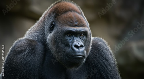 Magnificent portrait of a western lowland gorilla with thoughtful expression