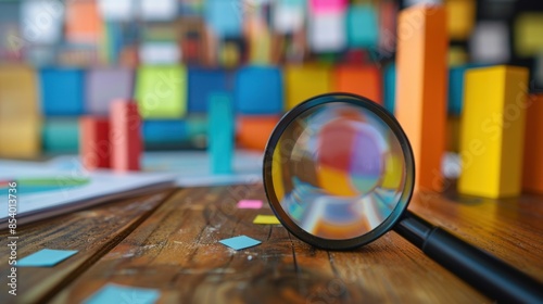 magnifying glass and data report on the table, business analysis concept