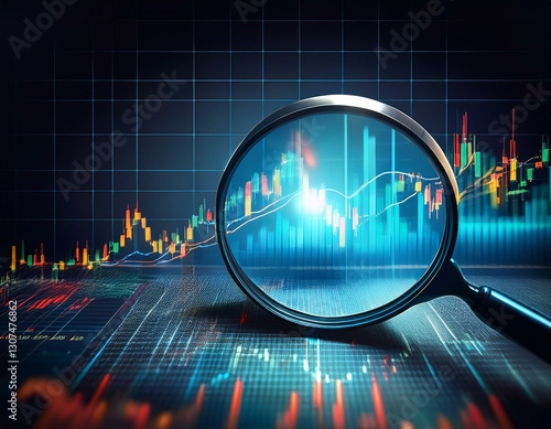 magnifying, glasses, stock, market, graph, financial, datum, analysis, business, vibrant, design, detailed, art, modern