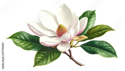 magnolia, flower, blossom, bloom, floral, botanical, nature, plant, white, green, leaf, leaf, tree branch, stem, flower petals, pistil, stamen, detail, illustration, art, drawing, realistic, delicate, elegant, spring, summer, garden, flora, natural, blooming, decorative, design, beauty, vibrant, fresh, growth, organic, springtime, greenery, foliage, ornate, detailed, isolated, closeup, pure