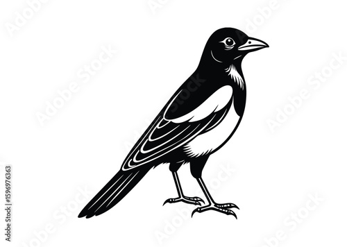 Magpie bird silhouette black vector white background
