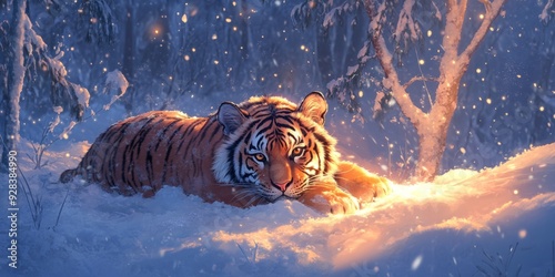 Majestic anime-style Tiger in the Snow: The Ideal Creative Poster for 2025 Winter Sports, Christmas, New Year, and Spring Festival Promotions,Anime-Style,illustration,Picture BooksFor Poster,Novel,UI,