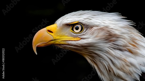 Majestic Bald Eagle Profile Close up View Against Black Background