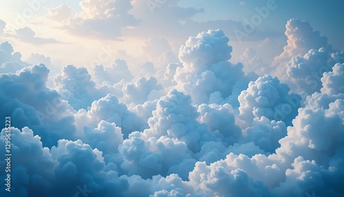 Majestic cloudscape featuring ethereal fluffy formations in sky