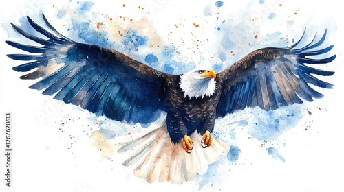 eagle, flight, watercolor, nature, wildlife, bird, majestic, freedom, animal, power, wing, sky, predator, soaring, bird of prey, avian, beauty, wild, conservation, background, art, painting, image, picture, graphic, design, illustration, symbol, majesty, american, bald, photo, fauna, bird of prey