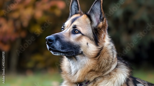 Majestic german shepherd in autumnal forest