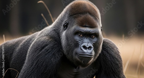 gorilla, animal, wildlife, savanna, nature, wild, mammal, primate, endangered, conservation, zoo, closeup, portrait, majestic, powerful, intense, curious, outdoors, brown, black, furry, strong, emotion, expression, face, eye