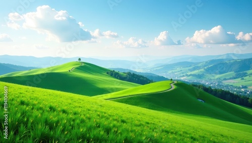 Majestic green hills stretching towards the distant sky, green hills, landscape, open land