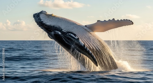 Majestic Humpback Whale Breaching in Sunlight, Displaying Powerful Grace and Beauty