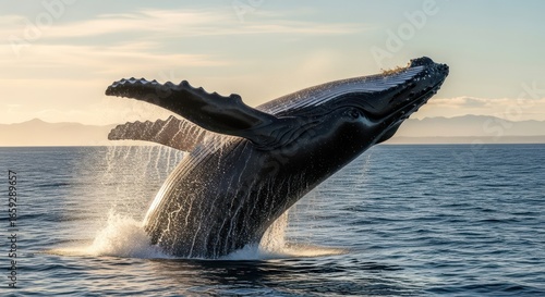 whale, humpback, ocean, water, splash, marin, sea, wildlife, animal, mammal, nature, aquatic, underwater, surface, jump, sunlight, spray, drop, blue, black, white, fin, fluke, tail, body, skin, texture, ripple, wave, horizon, sky, cloud, coast, mountain, landscape, freedom, grace, power, strength, beauty, majestic, wild, behaviour, ecosystem, conservation, biology, zoology, cetacean
