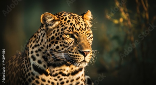 Majestic Leopard Gazes Serene A Portrait of African Wildlife in Golden Light.