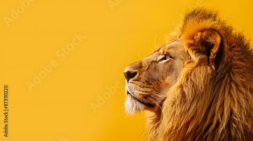 Majestic lion on a solid yellow background with copy space. King of the animals. isolated on a solid yellow background.Illustrations