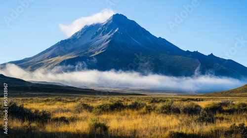 mountain, peak, landscape, natural, scenery, nature, majestic, mist, morning, sunrise, tranquil, serene, wilderness, outdoors, adventure, exploration, scenic, beauty, panorama, travel, tour tourism, destination, hiking, trekking, remote, untouched, pristine, field, cloud, sky, blue, horizon, slope, rugged, dramatic, impressive, ecology, environment, lush, vibrant, peaceful, breathtaking, cloudscape, highland, geology, terrain, summit