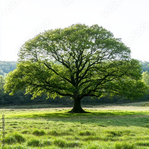 Majestic Oak Tree in Lush Green Meadow Spring Landscape Photography