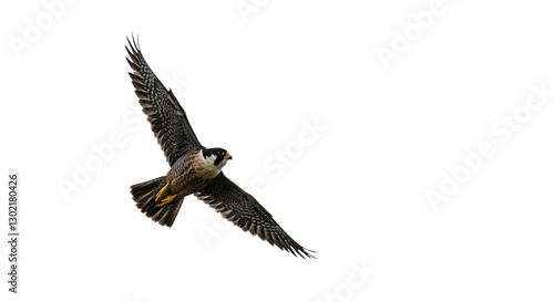 Majestic Peregrine Falcon in Flight Wings Spread Wide Isolated on White Background