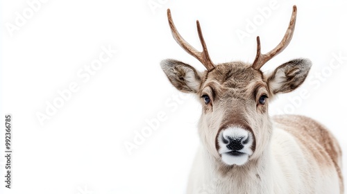 Majestic Reindeer on White Background - Close-Up of Beautiful Animal with Antlers in Winter Setting