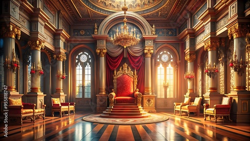 majestic throne Room, Golden royal throne,king throne illustration.4k resolution
