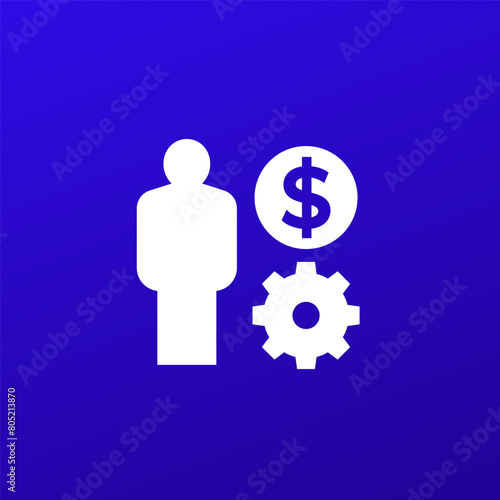 money, icon, constructed, vector, income, profit, wage, earning, dollar, financial, man, employee, cost, revenue, salary, investor, return, savings, account, staff, business, finance, pay, commission, person, gear, pictogram, design