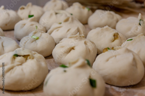 Making steamed buns in the kitchen