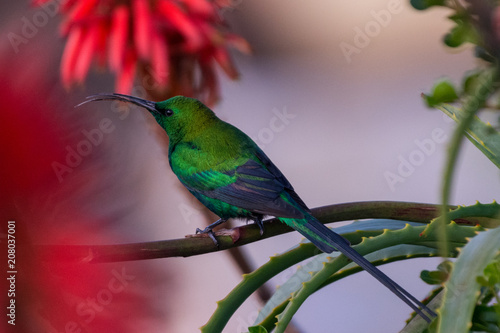 Malachite Sunbird (Nectarinia famosa) on an aloe plant in South Africa