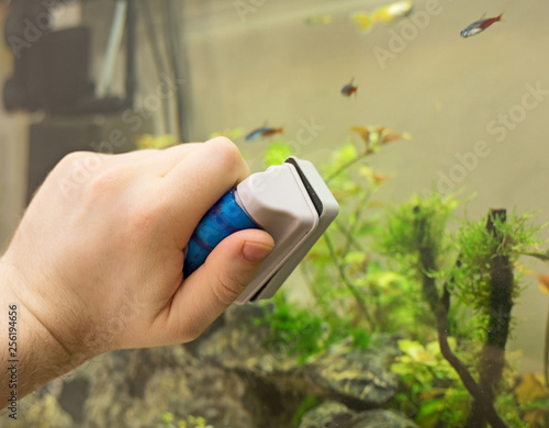 clean, water, aquarium, glasses, process, scraper, scrubbing, male, hobby, aquatic, underwater, hand, decorative, magnetic, algae, man, working, fish, tank, fish, indoor, cleaner, aquarium, laundered, clear, service, holding, remove, dirty, polish, equipment, work, maintenance, removing, person, home, aquarium, plastic, magnet, raid