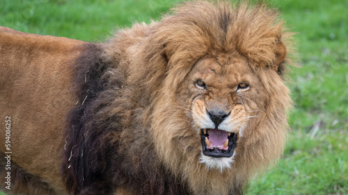 lion, grass-land, carnivore, adult, africa, animal, beast, beautiful, big, brown, cat, closeup, dangerous, face, fur, grass, green, head, hunter, king, large, leader, leo, looking, majestic, male, mammal, mane, natural, nature, noble, outdoors, portrait, power, predator, resting, species, strength, teeth, view, whisker, wild, wildlife