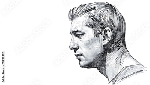 Male profile sketch with short hair and neutral expression