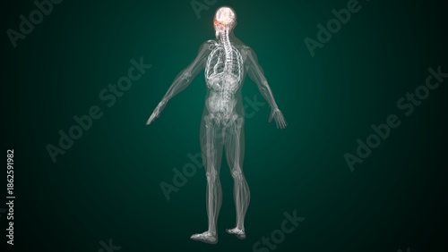 Male red colour eyes anatomy. 3d render