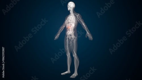 Male red gallbladder anatomy with colourful background. 3d render