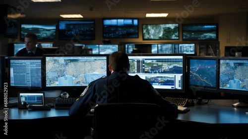 guard, system, man, service, video, office, cctv, safety, work, call, room, screen, business, workplace, male, crime, phone, uniform, back, protection, watch, property, prevention, control, communication, profession, computer, person, digital, danger, modern, guardian, table, television, technology, online, security, privacy, occupation, conversation, surveillance, camera, alertness, display, indoor, monitoring, monitor, sitting, supervision