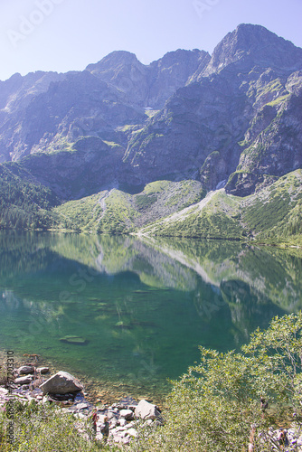 Malownicze Morskie Oko w Tatrach – krystalicznie czysta woda otoczona majestatycznymi szczytami gór, idealne miejsce na wędrówki i relaks w naturze.