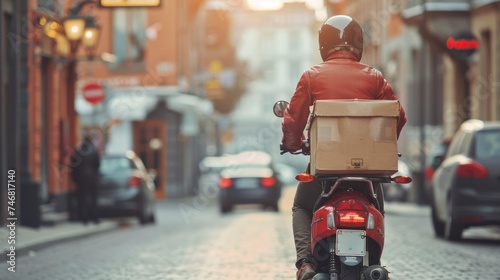 man carrying a home on the streets on a simple motorcycle in high resolution and high quality. concept of homes, couriers, shipments, packages, returns, food, deliveries