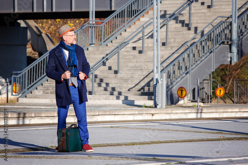 train, station, man, waiting, delay, suit, hat, cold, 50s, suitcase, goggles, photogenic, blue, late, railway, businessman, people, person, transport, travel, work, lifestyle, business, railroad, male, wait, caucasian, transportation, job, trip, commuter, rail, manager, platform, tour tourism, hurry, departure, baggage, passenger, journey, impatience, holiday maker, career, railroad station, beard, hipster