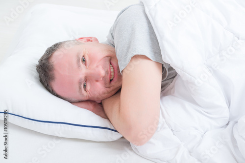 bed, bedchamber, home, happy, indoor, lying, resting, pillow, caucasian, smile, bedding, asleep, sleepy, comfortable, peaceful, sleep, relax, dream, room, nap, man, morning, napping, white, photogenic, comfort, healthy, laying, patient, lifestyle, good, clock, cheerful, sleeping, adult, rest, male, eye, 1, bedtime, closed, serenity, house, relaxation, happiness, laziness, domestic, calm, peacefulness, 30s