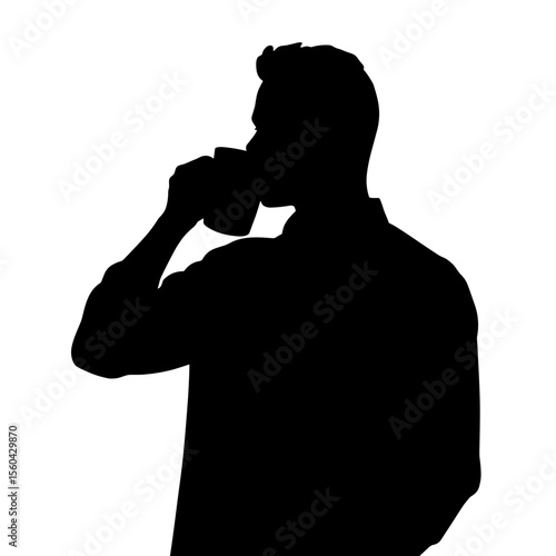 Man silhouette holding a coffee cup and enjoying a beverage