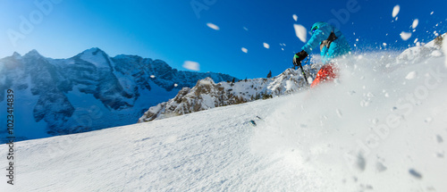 action, skier, snow, ski, sun, sunny, season, panoramic, freeride, freeride, wide, banner, mountain, motion, snowy, winter, powder, speed, sport, slope, downhill, cold, white, helmet, fun, travel, cool, seasonal, adult, male, extreme, ice, italy, lifestyle, man, nature, freeze, fast, freedom, europa, young, clear, landscape, alps, dolomite