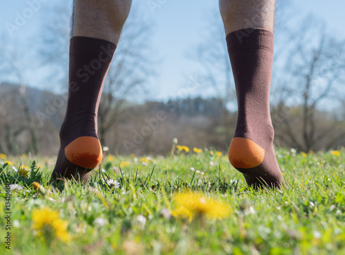 man, foot, sock, brown, orange, meadow, nature, walk, wildflower, greenery, leisure, closeup, foot, grass, spring, summer, field, recreation, lifestyle, colourful, clothing, ground, garden, pastoral, natural, background, environment, peaceful, fresh, tranquil, adventure, hike, casual attire, rural, travel, exploration, beauty, serene, wild, blossoming, lush, crop, anonymous, unrecognizable