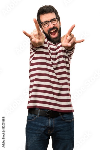 adult, aggressive, attractive, beard, casual attire, caucasian, concept, emotion, expression, finger, gesture, goggles, guy, hand, photogenic, hispanic, horn, isolated, latin, lens, man, model, optical, people, person, portrait, signs, slim, studio, style, symbol, vision, white, young