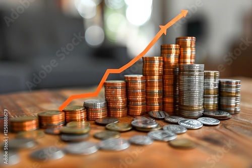 Managing Mortgage Loans: Graph Chart, Coins, and House Model Symbolizing Financial Strategy in a Changing Market Environment.
