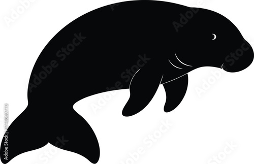 Manatee Silhouette Vector Illustration Flat Design, Black Manatee Silhouette Flat Vector Icon, Marine Manatee Symbol Flat Black Design.